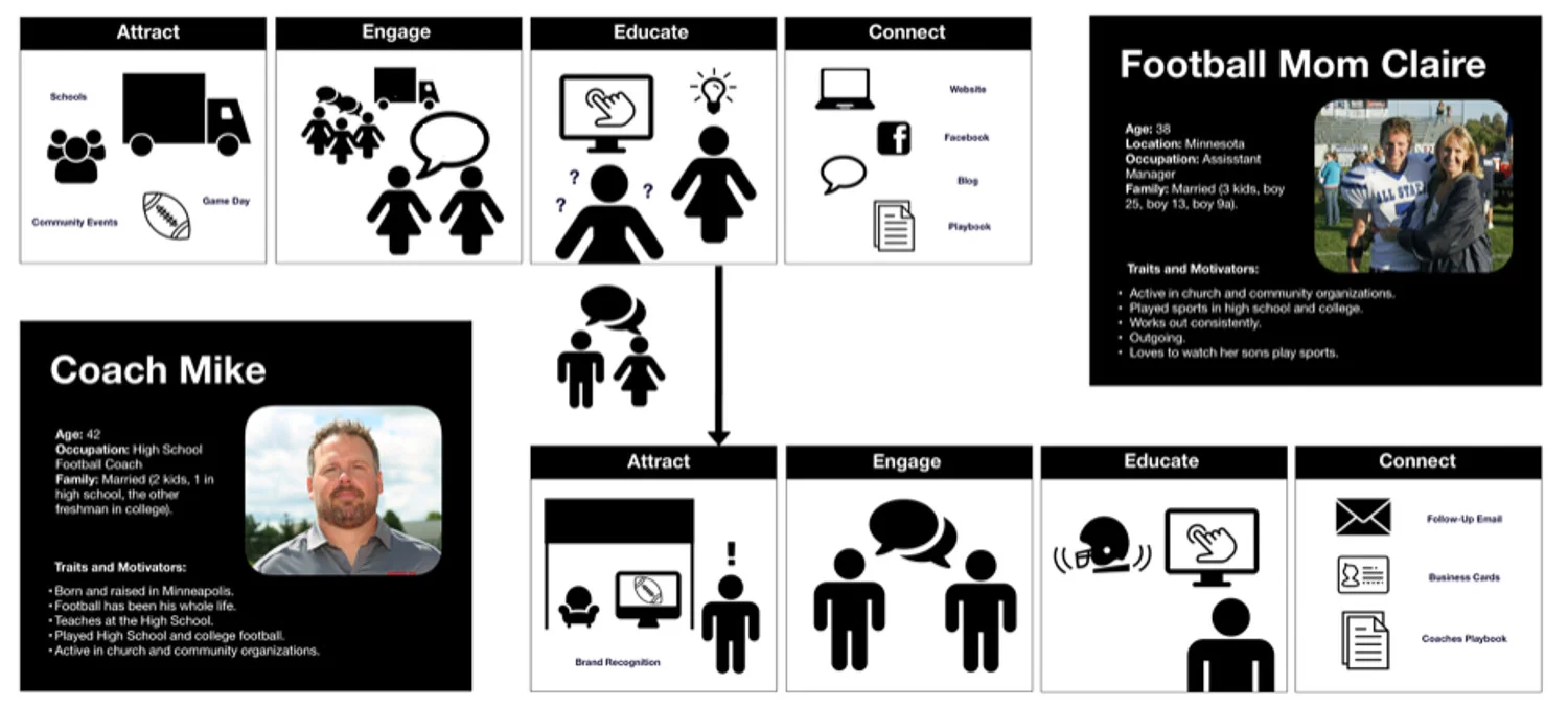 Through analysis of secondary research data and a stakeholder interview our team discovered an opportunity to shift the primary focus of the trade show experience from coaches and trainers to football families.